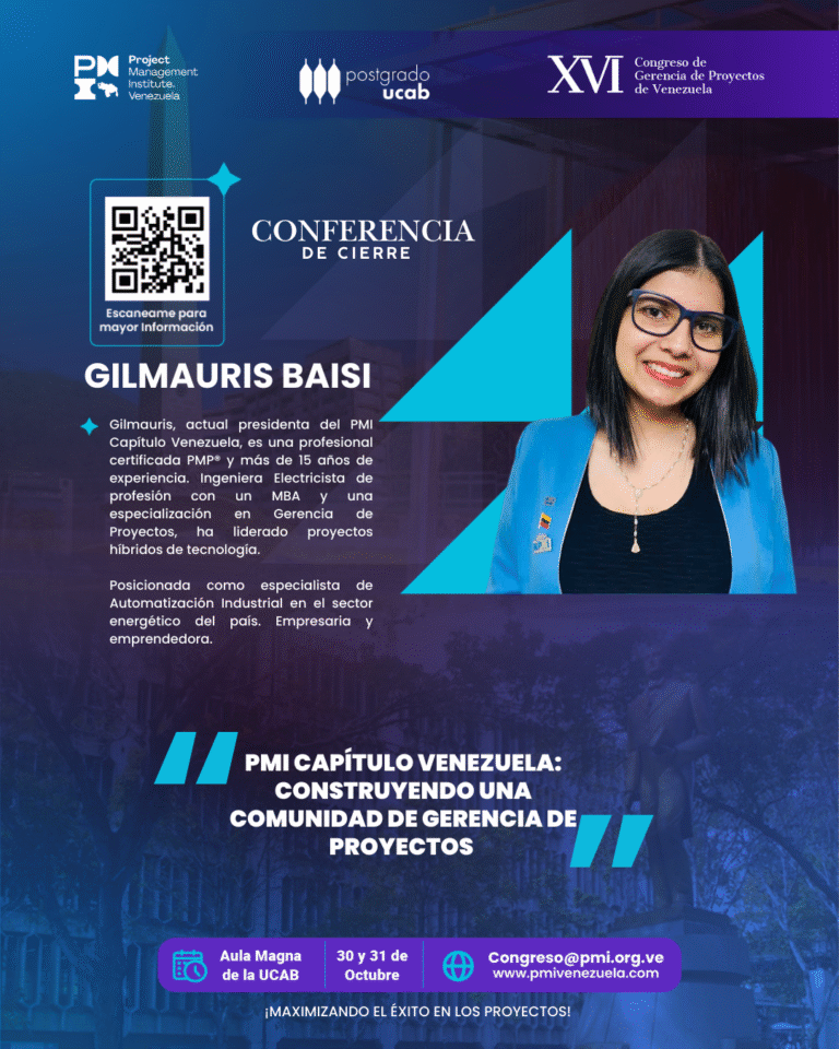 Durante el XVI Congreso Internacional de Gerencia de Proyectos, la presidenta del PMI Capítulo Venezuela, Gilmauris Baisi, presentará la conferencia: