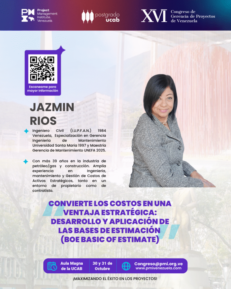 En el marco del XVI Congreso Internacional de Gerencia de Proyectos, Jazmín Ríos Reyes, especialista en planificación y control de proyectos, presentará su ponencia:
