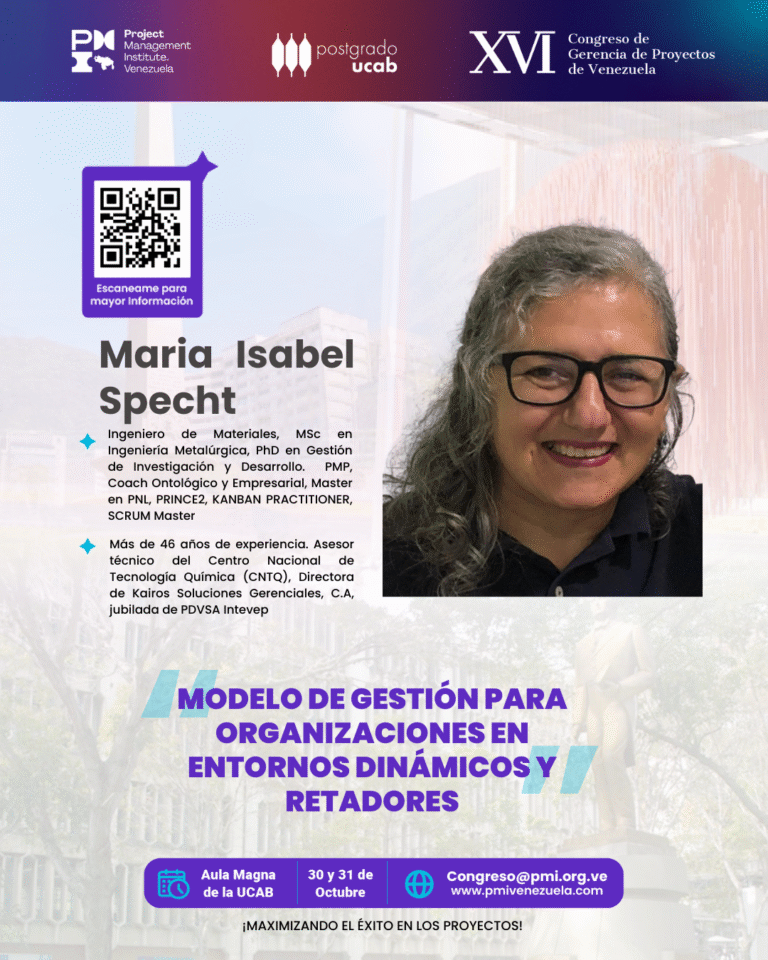 l XVI Congreso Internacional de Gerencia de Proyectos contará con la participación de María Isabel Specht, académica e investigadora en gestión organizacional, quien expondrá la ponencia: